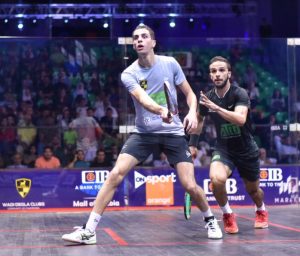 All four of their previous matches had gone the distance to five games, and despite the best of three format, crowds at the Mall of Arabia were treated to a spectacular 63 minute affair which saw ElShorbagy take a nail-biting third game by a 17-15 margin.