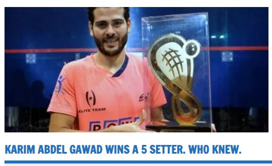 The men’s final also went the distance, with Karim Abdel Gawad going two nil up before finally beating Mohamed Abouelghar in five.