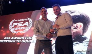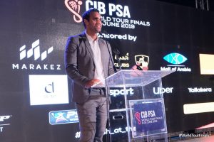 A great line from PSA CEO Alex Gough as he followed Karim Darwish opening the ceremony. “I could tell you that we were great pals, and that we really liked each other. Truth is, we absolutely hated each other and we hated playing each other. But that didn’t take anything away from the huge respect we had for each other and how impressed I am by what Karim has achieved this time yet again.”