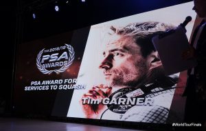 Oh my Lord PSA Tour Director Tim Garner’s face when he realised that the special award was not going to go to Nicol David but to himself. “I got ambushed,” commented the shy and discrete young man.