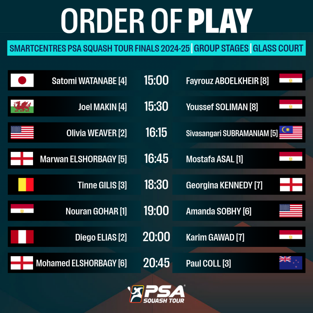 For more on the PSA Squash Tour Finals, follow the PSA on X,Facebook, Instagram, YouTube, TikTok, Threads, WhatsApp or LinkedIn.