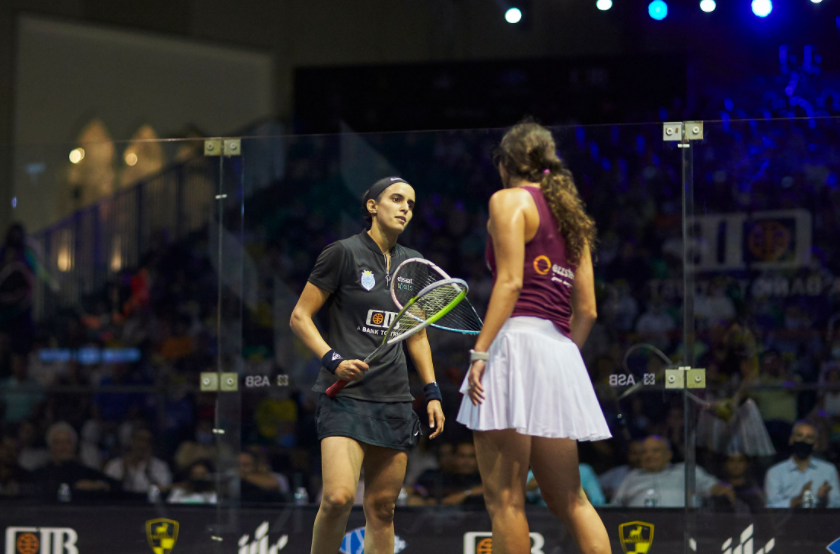 The second, El Tayeb came back a different player. Instead of waiting at the back and being passive, she stepped up the court, her shots stopped going in the middle, and she started dictating pace and angles. 4/1 El Tayeb, who led the whole way, 10/5, 11/6 in 10m.