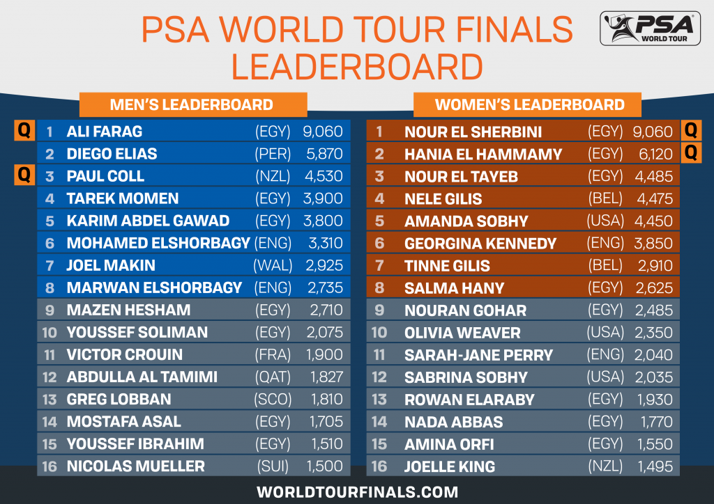 All Platinum title winners from the 2023-24 season – which are currently Nour El Sherbini, Hania El Hammamy, Ali Farag and New Zealand No.1 Paul Coll – automatically qualify alongside the reigning PSA World Champions.