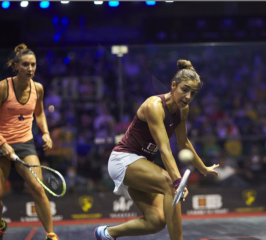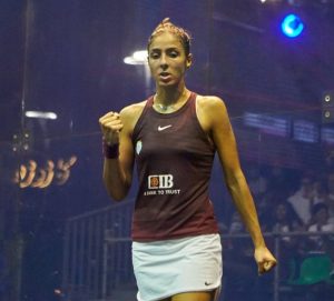 And at the start, Hania didn’t believe. The pressure of playing in front of her crowd, now she is with the Big Girls – her first CIBFinals – playing Camille that she knows she can beat – especially in front of an Egyptian crowd, plus, playing in front of her new fitness coach, Sami Farag, her parents, that’s a pressure she struggled with to start with.
