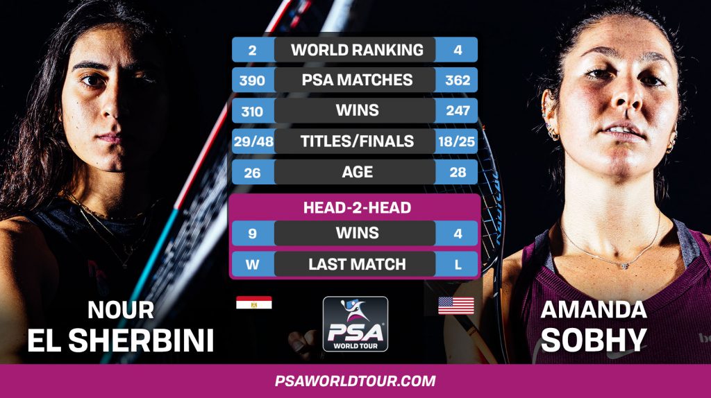 The second women’s semi-final will pit six-time World Champion Nour El Sherbini and US No.1 Amanda Sobhy against each other for a place in the finals in Cairo.