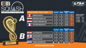 Over in the men’s competition, not many could see past an Ali Farag win after the impressive end to the season that he had. He picked up right where he left off, winning all of his group stage games to top his group and secure a spot in the semis. England’s Mohamed Elshorbagy would also progress from Group B after he used all of his experience to defeat Paul Coll and Tarek Momen to advance.