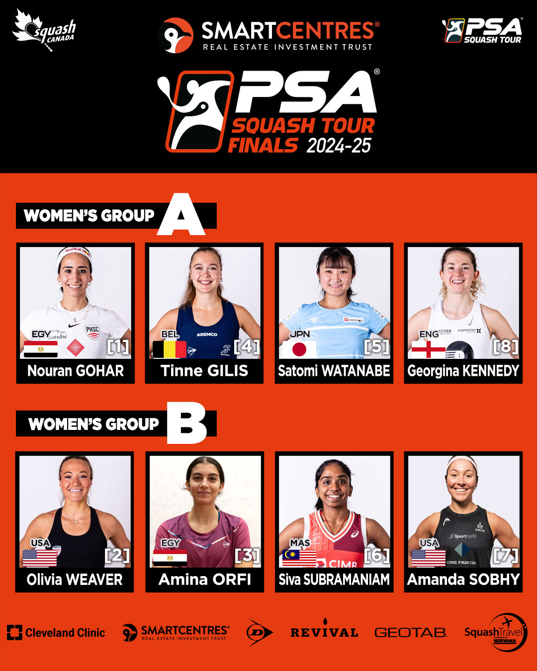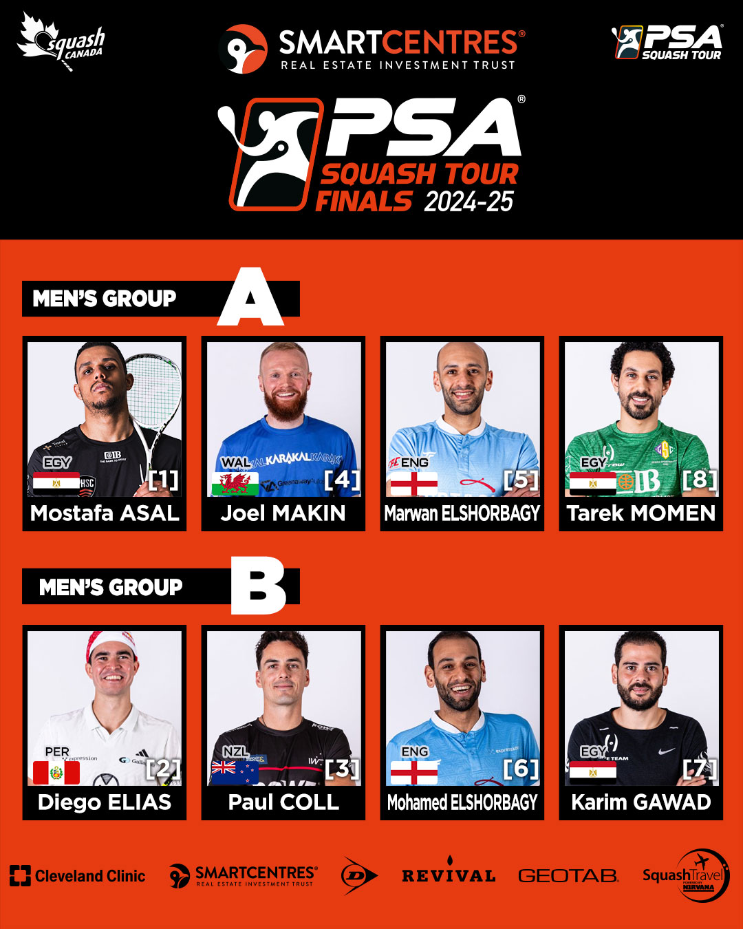 Staged at Toronto’s Revival Film Studios, the SmartCentres PSA Squash Tour Finals will be held in Canada for the first time in the tournament’s history. The top eight players who qualified via the Road to Tour Finals standings will square off for the season-ending finale.